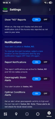 Live Push Notifications: Get alerts for your location! Receive notifications for community-submitted Aurora sightings, when a geomagnetic storm is in progress, or when viewing conditions become optimal after dark.