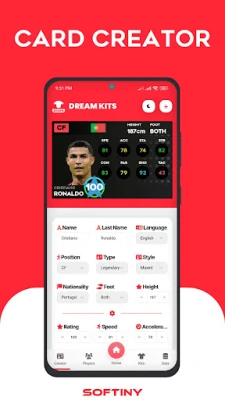 • Card creator: Design your own player cards with personalized stats, choosing positions and attributes that reflect the true essence of your favorite players.