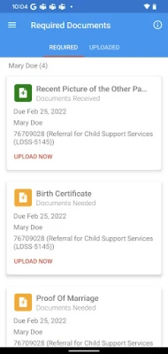 Once you have submitted your enrollment form, you will see a list of documents that may be needed for your enrollment. Depending on the type of form you submitted, we will either ask that you return your documents to us directly from this app or we will provide a list of documents that you should bring with you to court. If you are returning documents to us through our mobile app, you can take a photo from your camera roll straight from the list shown to you on the screen. After you submit your enrollment form, someone from the NYC Office of Child Support Services will reach out to you to confirm the information and required documents.