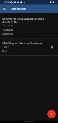 Once you have submitted your enrollment form for Child Support Services, you will be able to view and download a copy of the form.