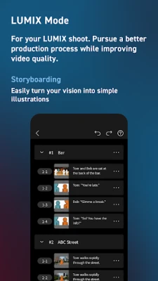 Use your smartphone as an external monitor for your LUMIX camera. Check your shot list and storyboard on your smartphone while shooting. You can easily see which shots have already been taken at a glance, ensuring you never forget a key shot and allowing you to work through your shoot smoothly and efficiently.