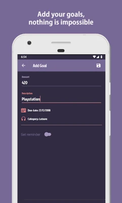 โ Add your goals, set the amount, category and deadline.