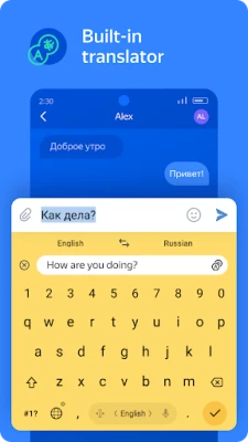 The keyboard uses proprietary machine learning algorithms developed by Yandex in order to make appropriate suggestions as you type. Advanced predictive capabilities even let you receive suggestions for words you haven't typed yet. You can also suggest your own words and let the keyboard adapt to the way you talk, or just forgo the feature altogether.